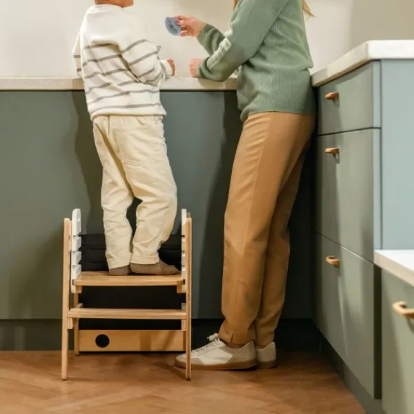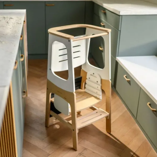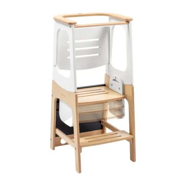 Comfort en gebruiksgemak staan centraal bij de Toucan 3-in-1 leertoren. Verstelbare hoogtes zorgen ervoor dat je kind veilig en comfortabel kan deelnemen aan familieactiviteiten, terwijl het geïntegreerde schoolbord een creatieve uitlaatklep biedt. Eenvoudige moduswisselingen maken de Toucan handig voor zowel ouders als kinderen, met een snelle draai die hem transformeert van leertoren naar tafel-en-stoel set, en uiteindelijk naar een praktisch opstapkrukje.