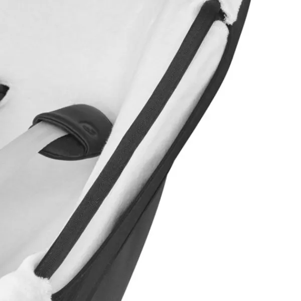 - De hoes is gemaakt van 100% biologisch katoen en de zwarte stof die over de buitenkant van het autostoeltje gaat is gemaakt van 87% polyester en 13% elastaan.