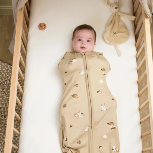 De Meyco Inbakerslaapzak Cocoon Forest Animals Sand biedt jouw baby comfort en veiligheid tijdens het slapen. Deze inbakerslaapzak combineert de eigenschappen van een slaapzak en een inbakerdoek, waardoor je kindje zich geborgen voelt zonder volledig ingebakerd te worden. De vrolijke bosdierenprint in neutrale kleuren past bovendien perfect bij de rest van de Meyco-collectie.