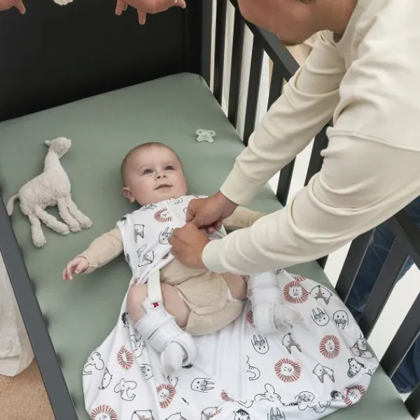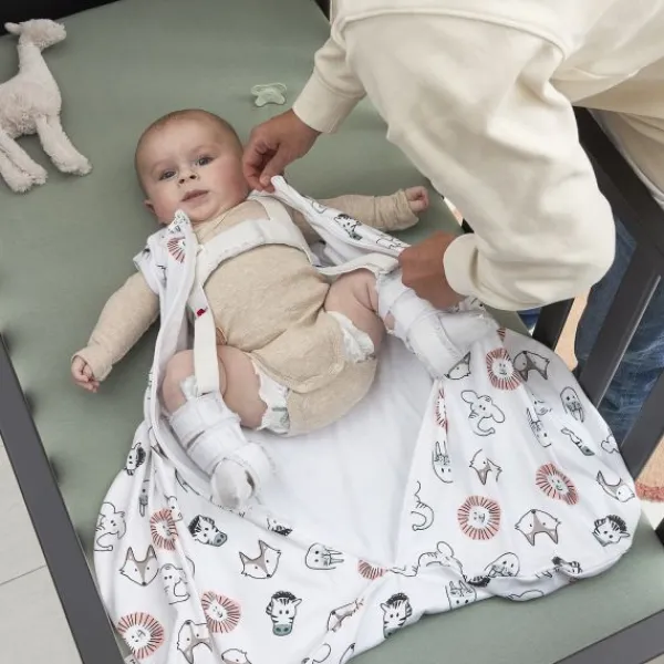 De Slaapzak Heupdysplasie Animal Multicolour van 70 cm is speciaal ontworpen voor baby’s met heupdysplasie. Dankzij de extra ruimte aan de onderkant biedt deze slaapzak voldoende bewegingsvrijheid voor de gespreide benen en heupen van je kindje, zelfs wanneer er een spreidbroek of gips gedragen wordt. Het ademende katoen zorgt ervoor dat je baby comfortabel en op de juiste temperatuur blijft, vooral in de warmere maanden.