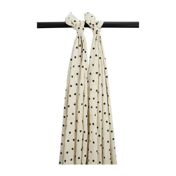 Meyco Baby Swaddle – Sweet Heart – 2-pack – Soft Sand/Black – 120×120 cm
