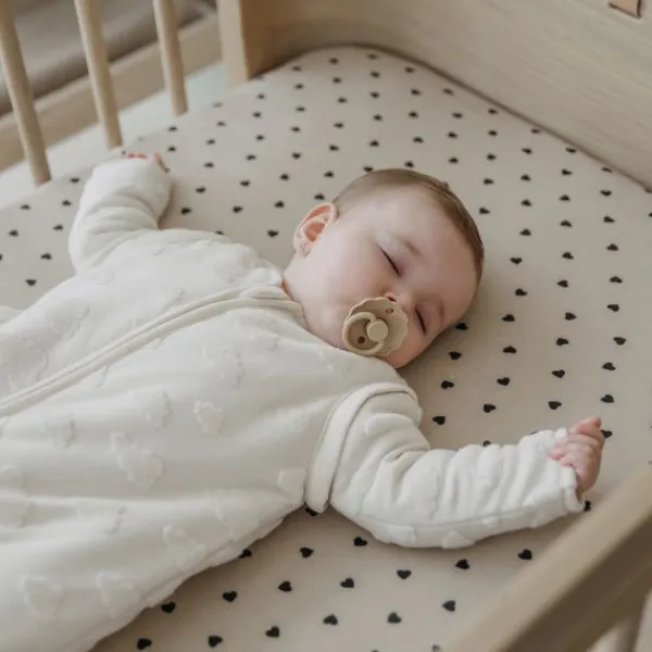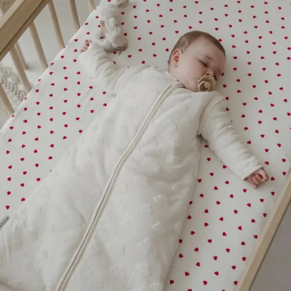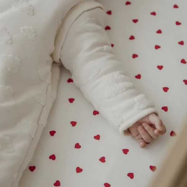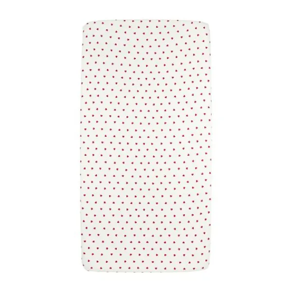 De vrolijke rode hartjesprint op een witte achtergrond zorgt voor een frisse, speelse uitstraling in de babykamer. Dankzij het elastiek rondom blijft het hoeslaken goed op z’n plek, zelfs als je kleintje veel beweegt.