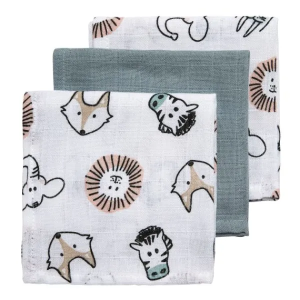 Set van 3 hydrofiele monddoekjes van het merk Meyco. De monddoekjes zijn erg zacht en daardoor prettig in gebruik voor je kindje. Deze monddoekjes hebben een hip dieren dessin.