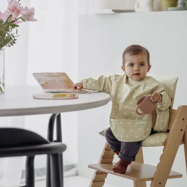 De Meyco Baby Mouwslab is een onmisbare must-have voor elke maaltijd of knutselmoment. Deze praktische slab met lange mouwen is uitgevoerd in een zachte sandkleurige tint met schattige hartjesprint (Sweet Heart Sand/Soft Sand) en biedt optimale bescherming tegen knoeien.