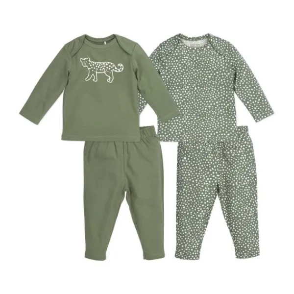 - Set van 2 pyjama’s in de kleur **Forestgreen** met trendy cheetahprint