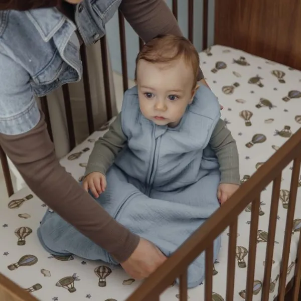 Deze gevoerde slaapzak is gemaakt van 100% pre-washed hydrofiel katoen en heeft een vulling van 100% polyester, waardoor hij perfect is voor het voor- en najaar en koude nachten. Het ademende katoen zorgt voor een aangenaam slaapklimaat, met uitstekende vochtopname en een sneldrogend effect. De zachte mousseline stof voelt heerlijk aan op de gevoelige huid van je baby.