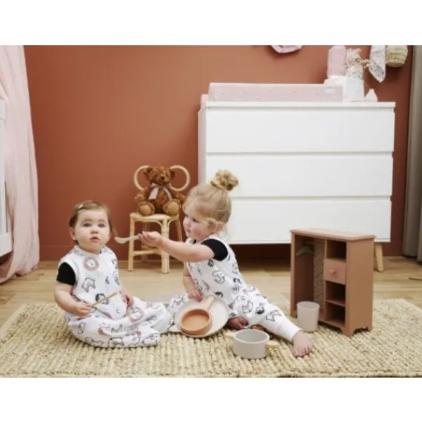 De print op de slaapzak heeft zachte, subtiele kleuren, waardoor je hem goed kan mix en matchen met de complete Meyco Baby collectie. De slaapzak heeft een veilige pasvorm door de goede aansluiting bij de hals en de armpjes. De slaapzak heeft een TOG-waarde van 0.3.