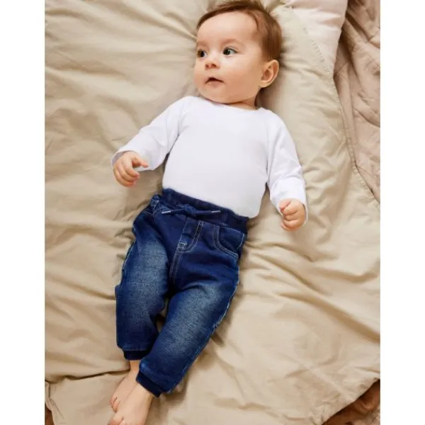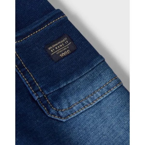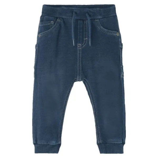Een leuk spijkerlook broekje voor jouw kleintje! Het broekje van Name It heeft een donker blauwe kleur met jeans look. Met verstelbaar elastiek in de bovenband.