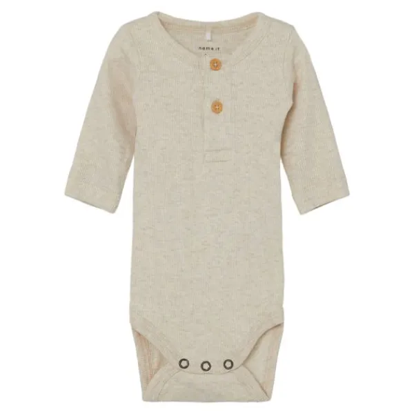 Deze mooie ribromper van Name It heeft lange mouwen en een zachte kleur die makkelijk te combineren is. De romper sluit aan de onderkant met handige drukknoopjes om het verschonen makkelijker te maken.