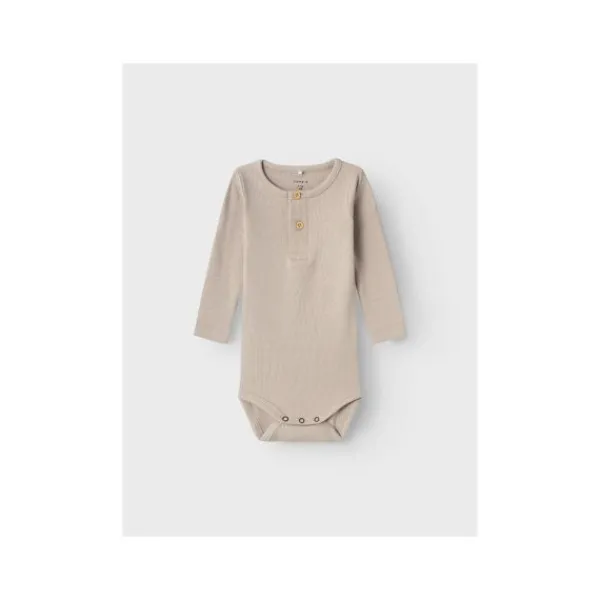 Deze mooie romper van Name It heeft lange mouwen en is van een zachte rib kwaliteit. De romper sluit met handige drukknoopjes aan de onderkant om het verschonen makkelijker te maken.