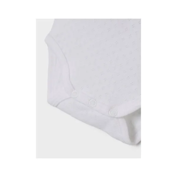 Deze 2-pack bestaat uit twee witte rompers met een prachtig needledrop werkje in het materiaal. De kleine gaatjes geven een chic patroon aan de romper wat het een goede basic en tegelijk een prachtige aanvulling op je kindjes garderobe maakt.