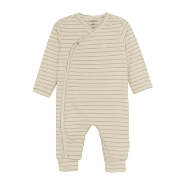 Het Noppies Nolan Boxpakje in Offwhite met subtiele streepjes is ideaal voor pasgeboren baby’s. Dankzij het overslagmodel met drukknoopjes hoef je het pakje niet over het hoofdje te trekken, wat aankleden en verschonen extra makkelijk maakt.