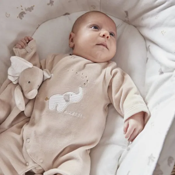 Deze fluwelen pyjama maat 62 combineert comfort met stijl: zachte beige tinten met subtiele Bali-accenten, ideaal voor bewegende baby’s.