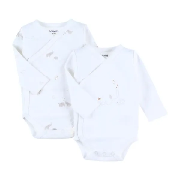 Noukie’s B&M Rompers – 2 stuks – Maat 68 – Lange Mouw – Bio Katoen – Wit