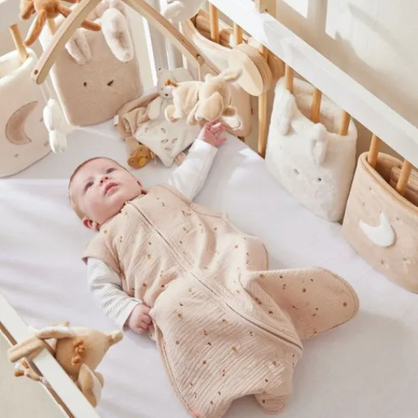 De lichte structuur van de mousseline voelt zacht aan en is ideaal voor gevoelige babyhuidjes. Dankzij de zijdelingse ritssluiting met beschermrand kun je de slaapzak makkelijk aan- en uittrekken zonder je kindje wakker te maken. De rustige Geluksduiven-kleur voegt een frisse, stijlvolle toets toe aan de babykamer en laat zich moeiteloos combineren met andere items uit de B&M-lijn.