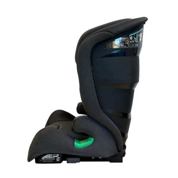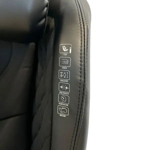 De autostoel beschikt over 16 verstelbare hoofdsteunhoogtes en twee zit/lig standen, waardoor hij mee kan groeien met je kind en comfort biedt voor langere ritten. De bekleding van de stoel is verrijkt met leatherette accenten, wat een vleugje luxe toevoegt terwijl het ook gemakkelijk schoon te maken is met een handwarm sopje en milde zeep.