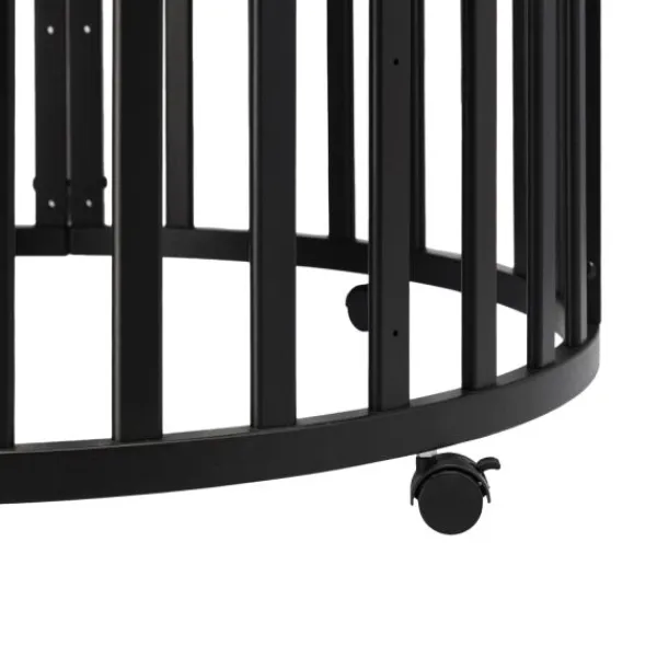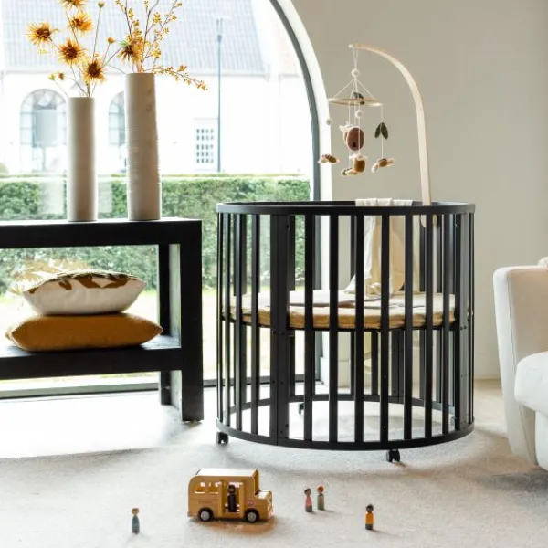 De Puck Ronde Box is gemaakt van hoogwaardig plaatmateriaal met beukenhout en staat op handige wieltjes, zodat je hem gemakkelijk kunt verplaatsen. Dankzij het strakke design en de zachte, neutrale kleuren is deze box een prachtige toevoeging aan de babykamer. Let op: de bodemplaat is relatief dun en iets ingewikkelder te verstellen dan bij sommige andere modellen.
