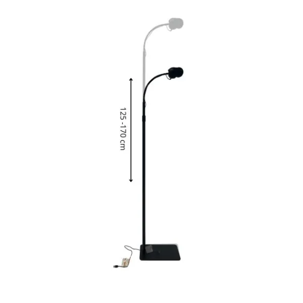 De standaard bestaat uit een stevige metalen voet met een verstelbare metalen buis en een flexibel gedeelte aan de bovenzijde. Hierdoor kun je de camera op een hoogte tussen de 125 en 170 cm plaatsen en eenvoudig de juiste kijkhoek instellen. Het schroefgedeelte bovenop het flexibele deel maakt het mogelijk om de babyfoon stevig te bevestigen.