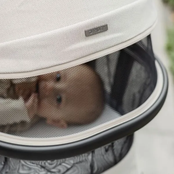 De Q-Rider Plus staat bekend om zijn soepele wendbaarheid en uitstekende wegligging op alle soorten terrein. Het frame met het zitgedeelte kan tot een compact pakket worden ingeklapt, waardoor de kinderwagen eenvoudig op te bergen is, zelfs in kleinere ruimtes. De ruime reiswieg biedt optimaal comfort vanaf de geboorte met een anti-reflux 3D-matras en ventilatievensters voor extra luchtcirculatie. Daarnaast zorgt de verstelbare zonnekap voor een veilige bescherming tegen de zon, ongeacht de weersomstandigheden.