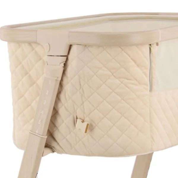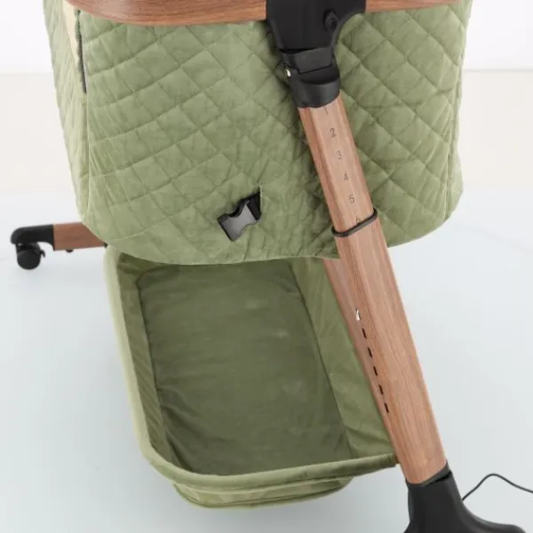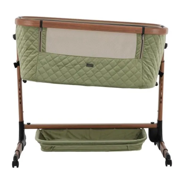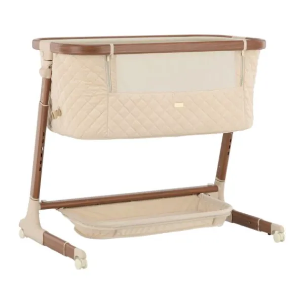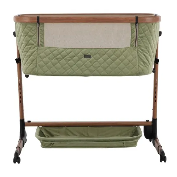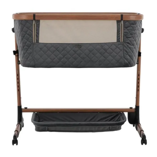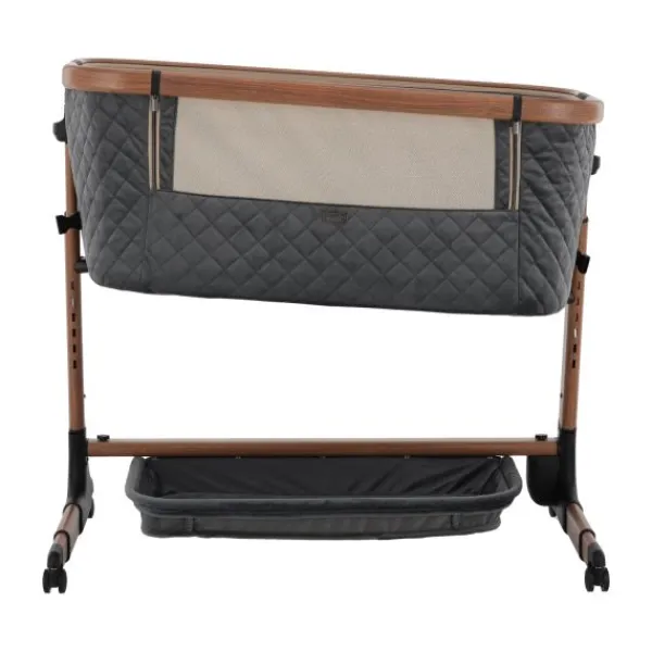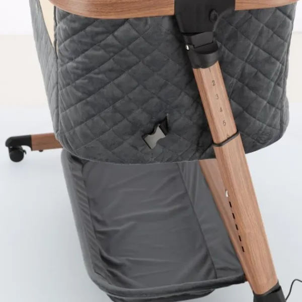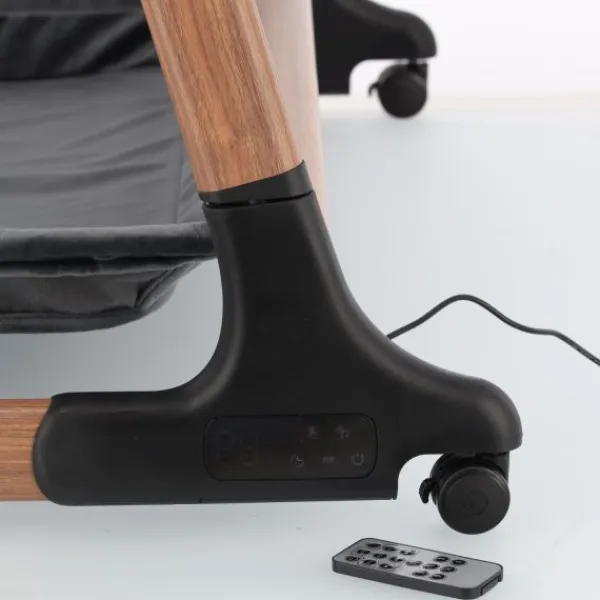 Deze co‑sleeper brengt comfort en technologie samen op een elegant manier. Dankzij de automatische schommelfunctie, die geactiveerd wordt bij beweging van je baby, en de integratie van Bluetooth en rustgevende slaapmelodieën, ervaart je kleintje een rustgevende slaapervaring. De velours bekleding in combinatie met een houtlook afwerking zorgt voor een warme uitstraling die past in elk interieur.