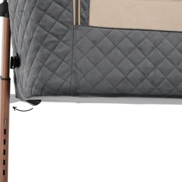 Praktisch in gebruik: de Q‑Wiggle is in hoogte verstelbaar in zes standen, waardoor hij perfect aansluit op de hoogte van je ouderbed (met een matrashoogte tussen 53 en 71 cm). Dankzij de uitschuifbare poten met wieltjes en remmen kun je de wieg gemakkelijk verplaatsen én veilig vastzetten. Het matras met een hardheid van 28 kg/m², gecombineerd met een 3D ventilerende en wasbare tijk, zorgt voor een gezonde en hygiënische slaapplek voor je baby.