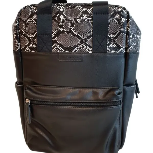 Deze Ralph Boyer rugzak is zwart van kleur met aan de bovenkant een leuk snake patroon. Deze mooie rugzak is voorzien van een groot binnenvak met daarin een isolerend vakje voor de fles, een vakje met rits en twee vakjes zonder rits waar je bijvoorbeeld pampers en billendoekjes in kan doen. Aan de voorkant van de rugzak zit nog een klein vakje met rits voor bijvoorbeeld je sleutels of portemonnee in op te bergen. Aan beide zijkanten zit nog een klein vakje en aan de achterkant zit ook nog een groot vak. Kortom genoeg bergruimte in deze rugzak!
