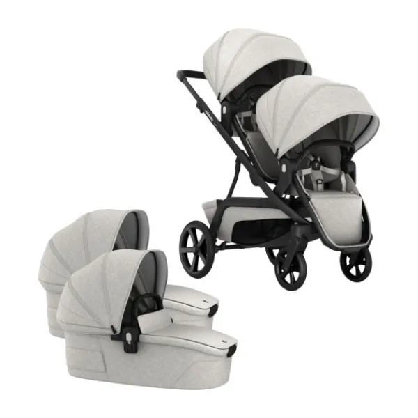 De Nuvo Twin is ontworpen voor maximaal comfort voor zowel ouder als kind. De unieke hoge oudergerichte zitpositie bevordert contact met je kleintjes, terwijl ademende panelen in rugleuning, zonnekap en reiswieg zorgen voor optimale ventilatie. De extra grote UPF50+ zonnekap beschermt tegen zon en wind, en de voor- en achtervering garanderen een soepele rit, ook op oneffen terrein. Beide zitjes beschikken over een ergonomisch 5-punts harnas met zachte schouder-, taille- en kruisbanden voor maximale veiligheid en comfort.