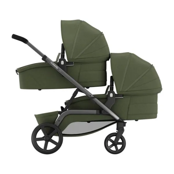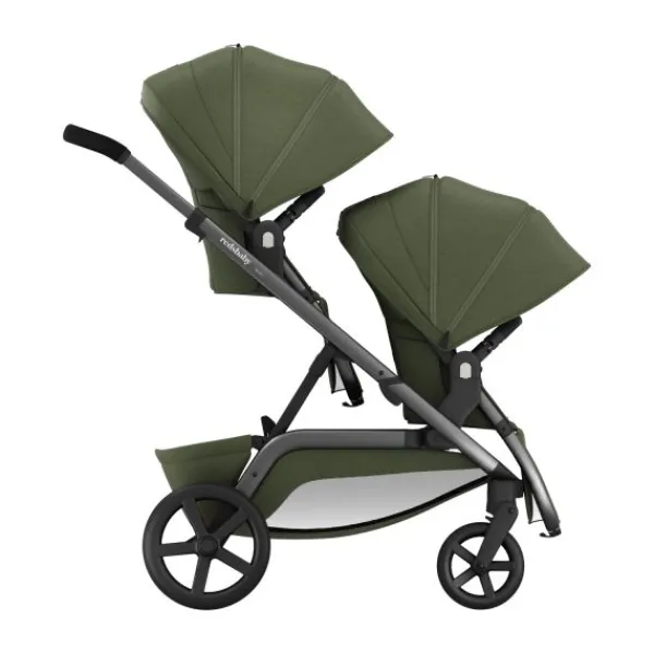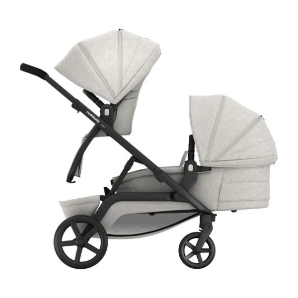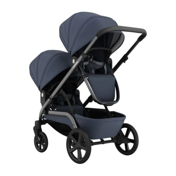Het gebruiksgemak van de Nuvo Twin is ongeëvenaard. De kinderwagen is in enkele en dubbele modus opvouwbaar met zitjes bevestigd, en met één hand verstel je zitting, voetsteun en stuurhoogte (96–106 cm). De extra grote boodschappenmand kan tot 12 kg dragen en is eenvoudig van alle kanten bereikbaar. Beide zitjes en reiswiegen zijn met één hand te verwijderen, ideaal voor onderweg. Dankzij de compatibiliteit met diverse babyautostoelen (met adapters, apart verkrijgbaar) is de overstap van auto naar kinderwagen snel en soepel.