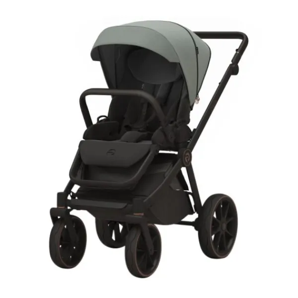 De ruime reiswieg is voorzien van een ademende kokosmatras en zachte, gewatteerde katoenen voering voor maximaal comfort. Dankzij drie ventilatiepunten, waaronder in de bodem, is er altijd een aangenaam binnenklimaat. Het zitgedeelte is volledig verstelbaar voor zit- en slaaphoudingen en is bekleed met luxe eco-leer op de duwstang en bumperbar voor extra comfort voor ouder en kind.