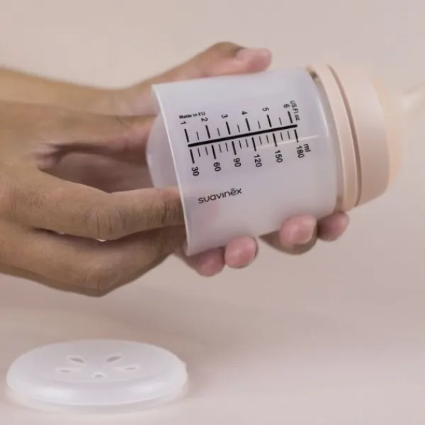 De Suavinex Zero Zero Anti‑Koliek Fles Borstvoeding – One Size – 180ml – Light is ontwikkeld om het voeden van je baby zo natuurlijk mogelijk te maken. Deze fles is bijzonder geschikt voor baby’s die borstvoeding krijgen of overstappen naar flesvoeding. Het innovatieve anti‑koliek systeem met een intern zakje voorkomt luchtinname, waardoor krampjes en reflux bij je kindje worden verminderd.