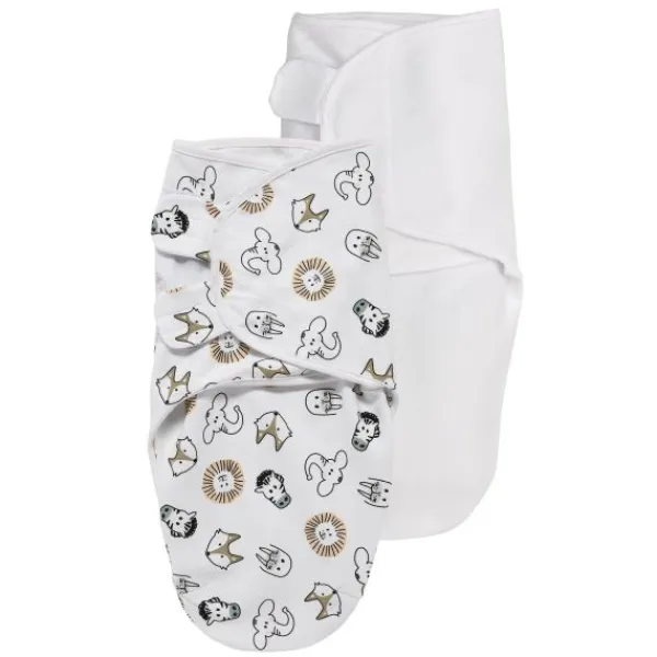 Praktische inbakerzak van SwaddleMeyco in leuk Dieren dessin en Uni kleur.