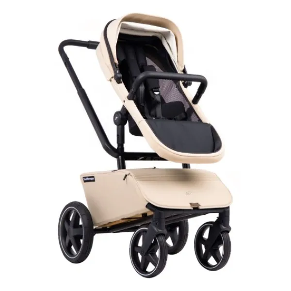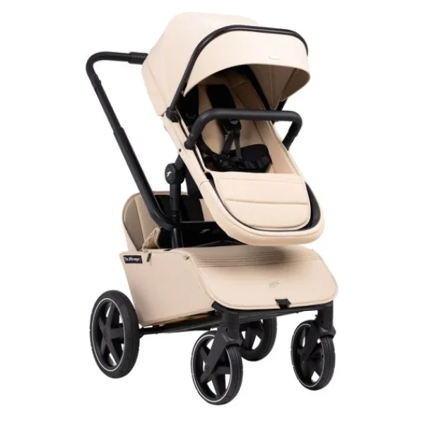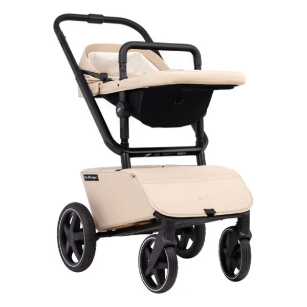 Skateboarden was wat de ontwerper veel deed (soms nog doet). Dat plezier zie je hierin terug. Je kind staat bovenop de achteras als het meerijdplankje in gebruik is. De vering voor de kleinste, zit daarom direct onder je de autostoel, reiswieg en zitting.