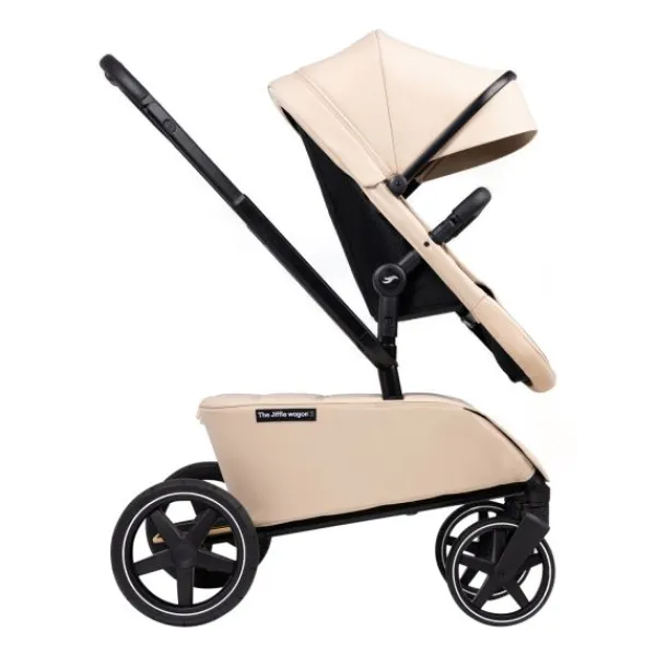 Met een vooral gelast frame, zoals bij fietsen, is het een erg sterke kinderwagen. Ze gebruiken hierdoor ook zo min mogelijk kunststoffen in The Jiffle wagon.
