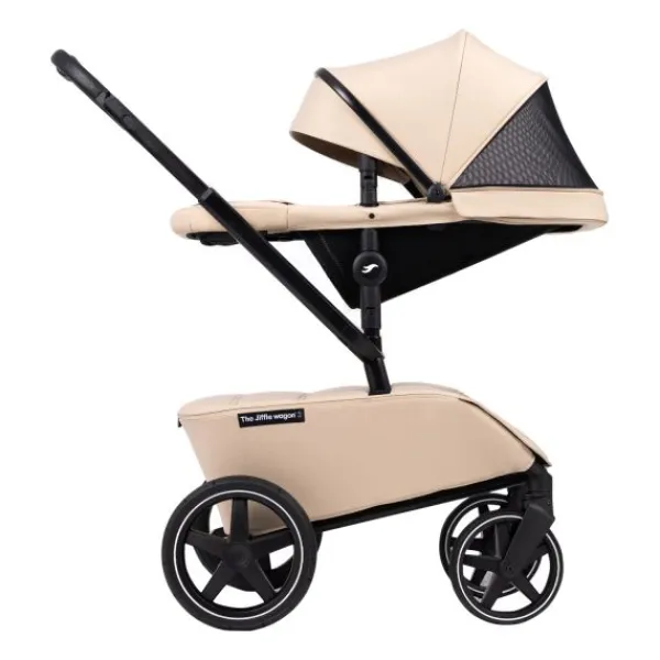 Deze alles al in één kinderwagen is van het merk The Jiffle. Kinderwagen, meerijdplankje en bolderkar in één! Zelfs eventueel uit te bereiden tot duowagen en bolderkar met zitje (Niet inbegrepen)!