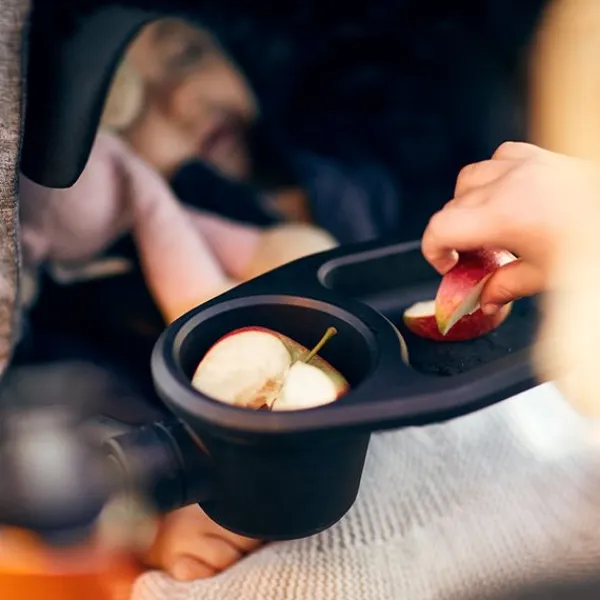Voeg een tafelblad voor snacks met bekerhouder toe aan jouw Thule Sleek kinderwagen. Ideaal voor snacks en drankjes.