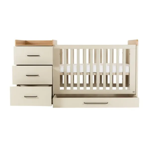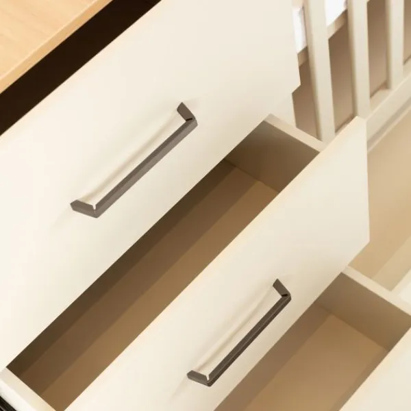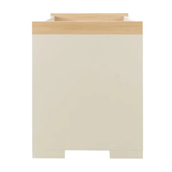 De Galaxy-serie is vervaardigd van hoogwaardige meubelplaat met een krasvaste melamine toplaag in de kleur Clay (beige/taupe), aangevuld met houtkleurige accenten. Dit maakt de meubels niet alleen stijlvol, maar ook duurzaam, kleurvast en eenvoudig schoon te maken. Het strakke en moderne ontwerp is gemakkelijk te combineren met andere meubels en accessoires, zodat je een harmonieuze en praktische babykamer kunt creëren.