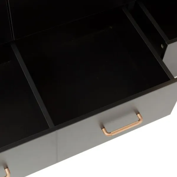 - Commode beschikt over drie ruime opberglades