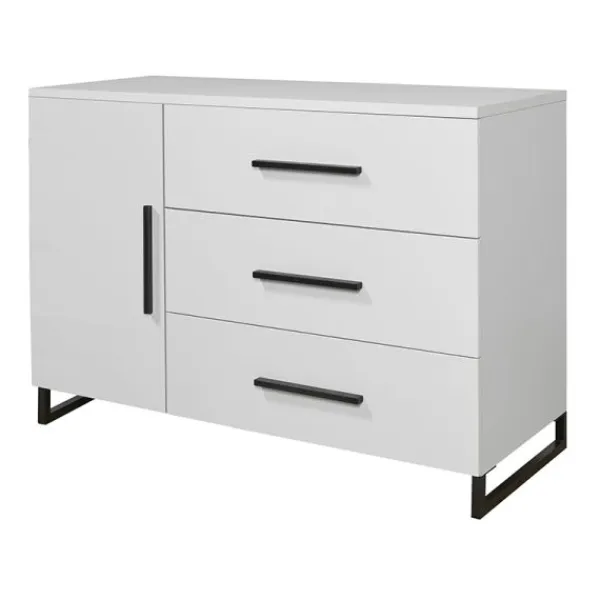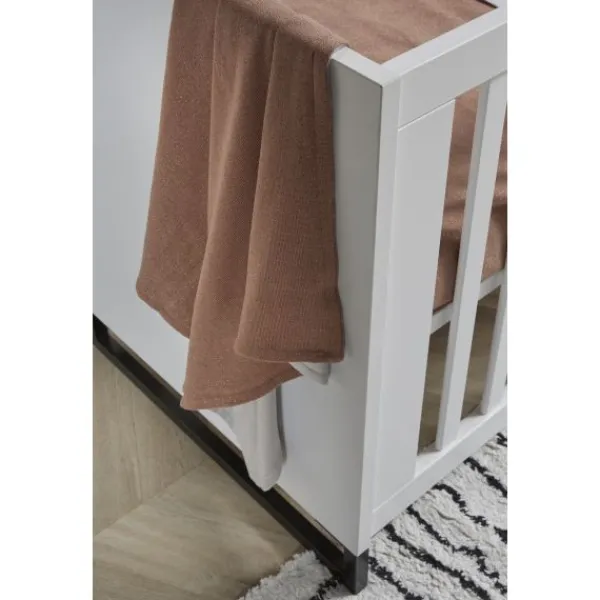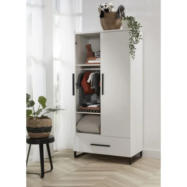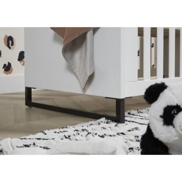 Babykamer Torino van het merk TWF is een hippe babykamer uitgevoerd in de trendkleuren wit en zwart. Deze babykamer is gemaakt van wit plaatmateriaal en is voorzien van metalen poten onder de meubels.