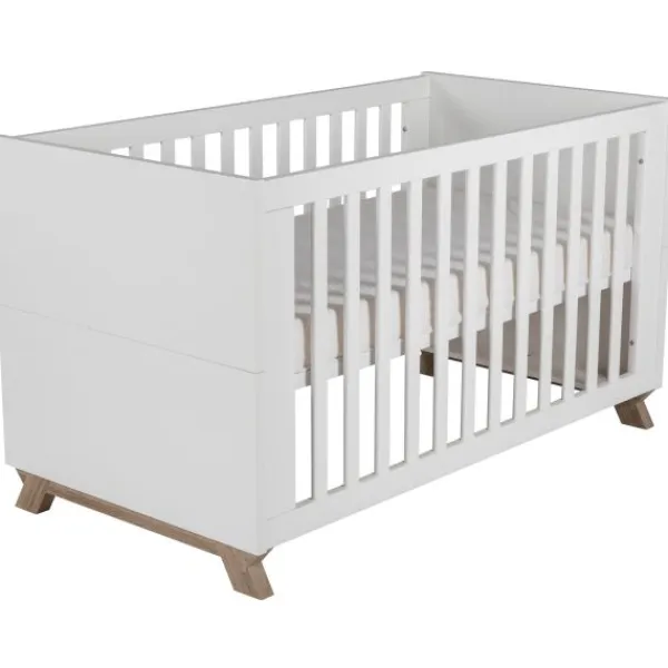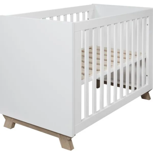 Het ledikant is voorzien van een in hoogte verstelbare lattenbodem en zijden met platte spijlen. Dit ledikant voldoet aan alle veiligheidseisen.