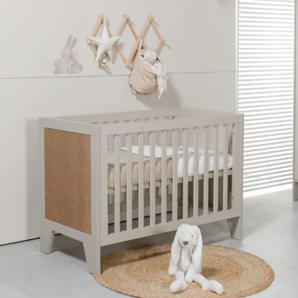 Babykamer Tampere van het merk TWF is een hippe kamer. Deze kamer is gemaakt van clay-kleurig MDF met jute panelen. De zwarte metalen handvaten maken deze moderne kamer helemaal af.
