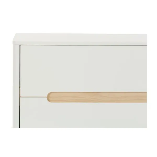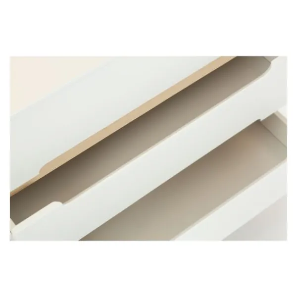 Alle meubels zijn vervaardigd uit hoogwaardig MDF met een matte witte lakafwerking en houtkleurige accenten. De afgeronde hoeken en massief houten poten zorgen voor een zachte en veilige uitstraling. De TWF Larvik producten zijn ontworpen met het oog op gebruiksgemak en veiligheid, en voldoen aan alle Europese veiligheidsnormen.