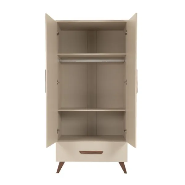 - Kast beschikt over voldoende opbergruimte: 2 planken, 1 roede en een lade