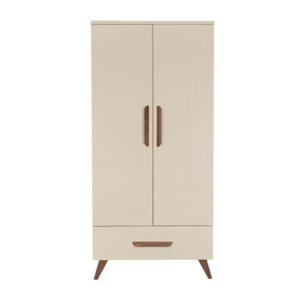 Ben jij gek op de trendy Japandi interieurstijl? Dan is de Salerno babykamer de perfecte keuze! De kamer kenmerkt zich door de mooie neutrale beige kleur in combinatie met de donkerbruine pootjes. Het minimalistische en stijlvolle design geeft de babykamer een luxe uitstraling. Door het gebruik van de neutrale kleuren wordt er een rustgevende sfeer gecreëerd in de babykamer. De bodem van het ledikantje is verstelbaar in drie verschillende hoogtes, zodat je kindje altijd op de juiste hoogte ligt. De commode biedt voldoende opbergruimte om je kindje te verschonen. Zo beschikt de commode over drie lades waarin je de spulletjes van je kindje gemakkelijk kunt opbergen. De kast beschikt ook over voldoende opbergruimte. Binnenin de kast bevinden zich namelijk 2 legplanken en een hangstang en daarbij bevat de kast ook een lade. Ook beschikken de kastdeuren over soft-closing, hierdoor kunnen de deuren geruisloos geopend en gesloten worden. Zowel het ledikantje, de commode en de kast zijn gemaakt van hoogwaardig materiaal, namelijk een combinatie van plaatmateriaal dat is afgewerkt met PVC-randen. Verder zijn deze meubels leuk te combineren met de andere items uit de Salerno-collectie.