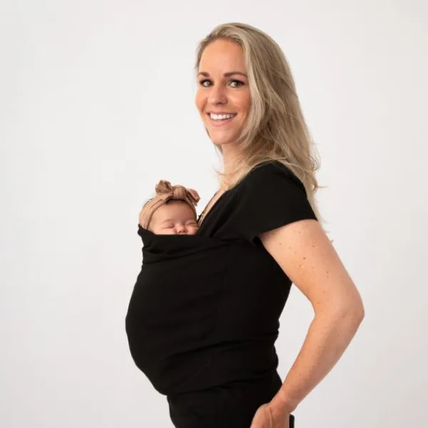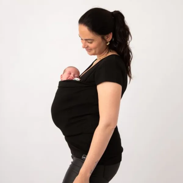 Simpel, veilig en ergonomisch. Deze buikdrager verwerkt in een shirt van Womboo.