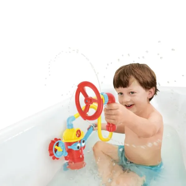 De brandweerpomp ziet er leuk uit met zijn vrolijke kleurtjes. De pomp is met zuignappen in het bad te bevestigen. Je kindje kan verschillende onderdeeltjes erop zetten, een kraan, een slang of een meter. Je kindje kan zo lekker spelen met water in het bad.
