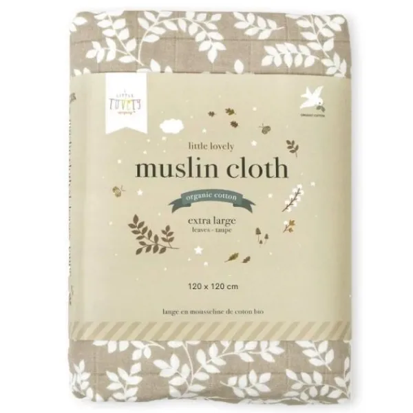 Het subtiele Leaves-dessin in grijsbruin geeft deze doek een kalme uitstraling die perfect past in elke moderne of natuurlijke babyuitzet. Een fijne, veelzijdige doek die je overal mee naartoe neemt — van thuis tot onderweg.