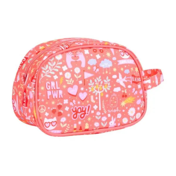 De toilettas is gemaakt van lichtgewicht polyester, wat hem duurzaam en gemakkelijk schoon te maken maakt. Voor langdurig gebruik wordt aangeraden de tas met de hand te wassen.