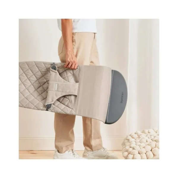 De BabyBjörn Bliss Bouncer Geweven Klassiek Quilt Zandgrijs is gemaakt van een extra zachte stof. Het veiligheidsharnas, met zijn heerlijk zachte bekleding, is comfortabel voor je baby om aan vast te houden.