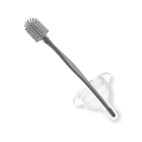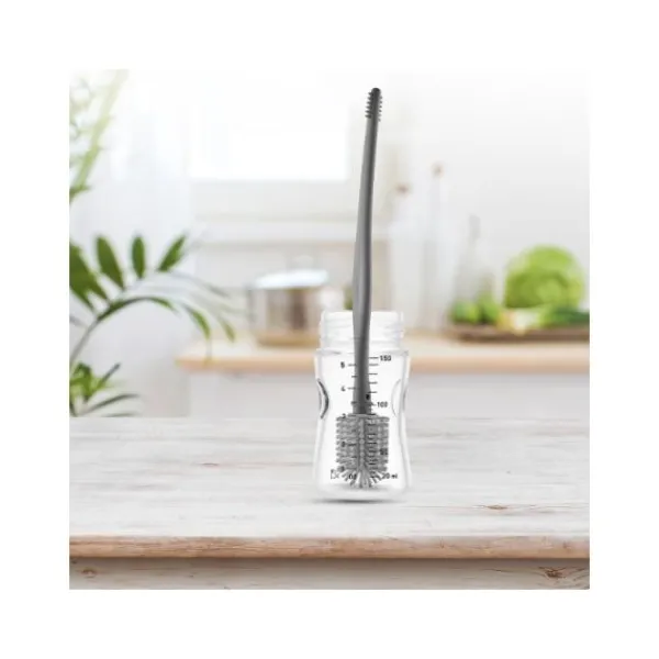 Handige flessenborstel van het merk Babyjem gemaakt van siliconen om babyflessen en accessoires schoon te maken. Dankzij de ronde, flexibele borstelkop kan je hiermee flessen van de meest uiteenlopende flessen afwassen. Bovendien maakt het materiaal geen krassen op de flessen. Aan de achterkant zit een extra borsteltje om spenen en kleine accessoires schoon te maken.