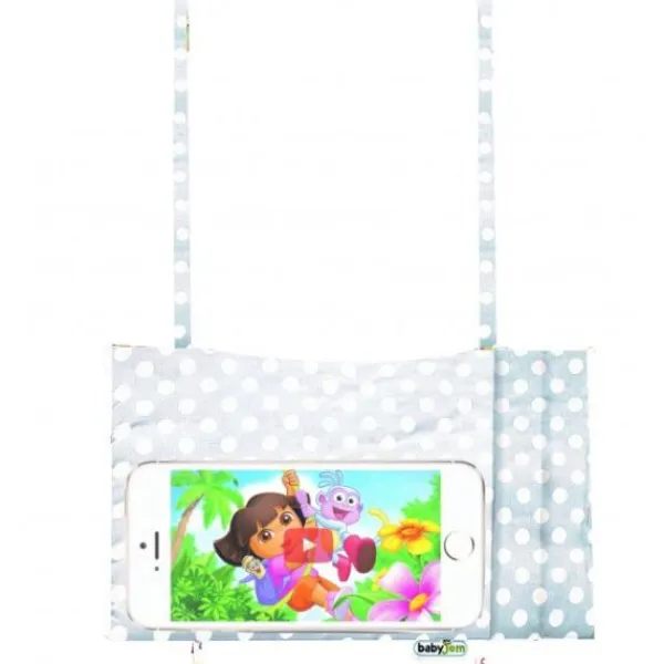 Deze telefoonhouder van het merk Babyjem is handig voor in de auto. De kinderen achterin de auto kunnen zich prima vermaken met het kijken naar hun favoriete filmpjes. Aan de lusjes aan de onderzijde kunnen 2 speeltjes worden bevestigd.